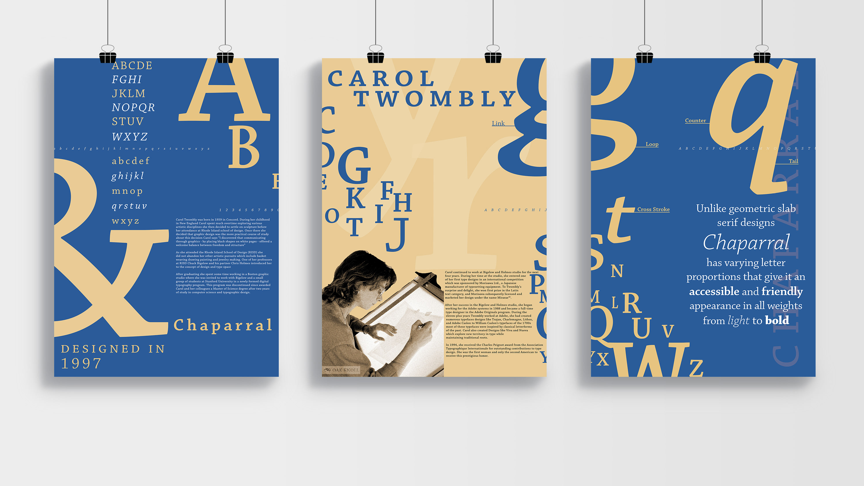 A triptych layout poster that focuses on the design about the 'Chaparral' font